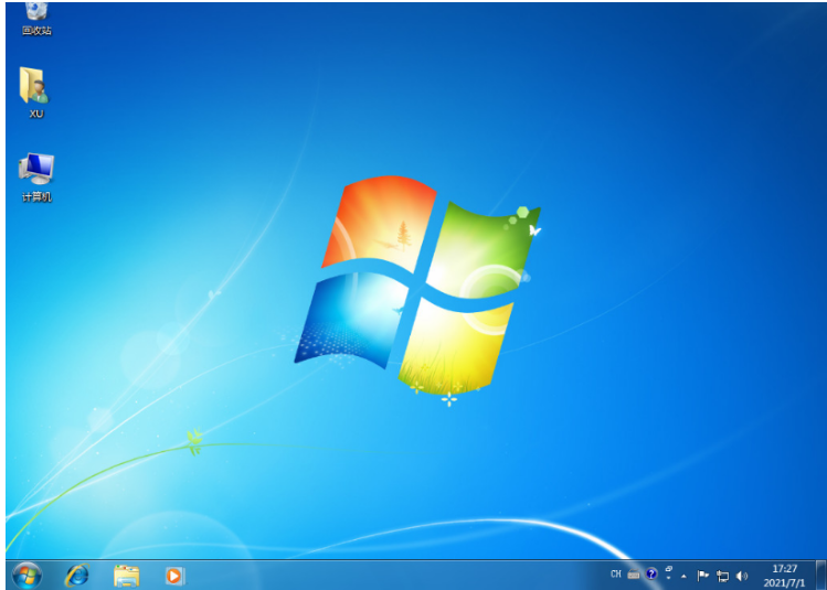 5、重啟電腦之后直至進入新的win7系統桌面就可以正常使用啦。