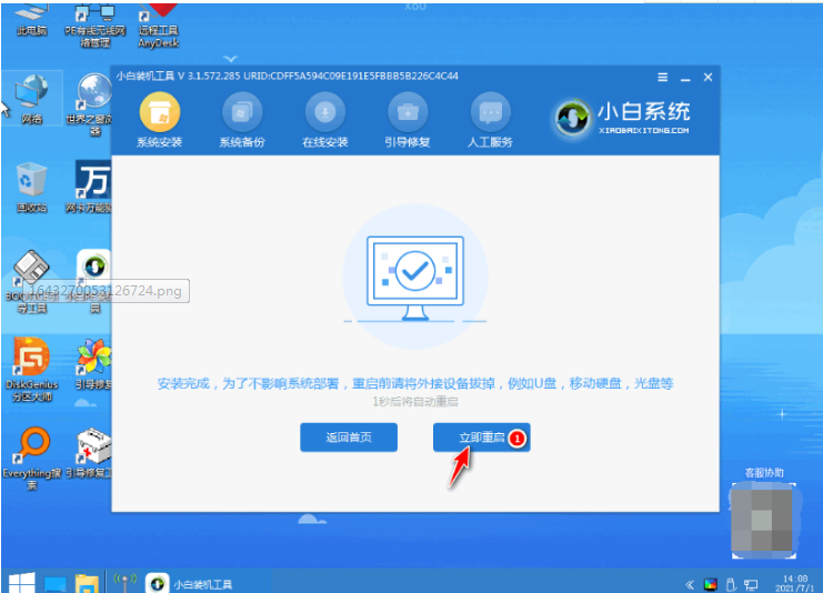 6、系統安裝完成后,點擊立即重啟電腦即可。