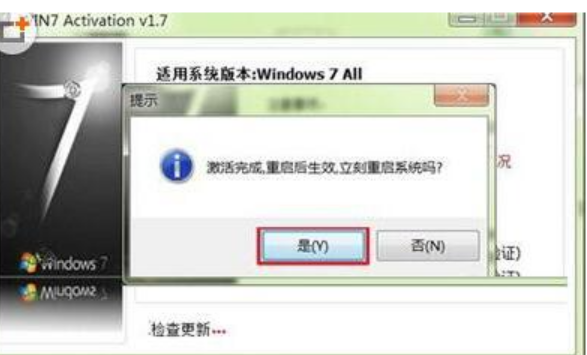 4、等待激活完成后,軟件會彈出提示框,提示你激活完成,點擊是選項重啟電腦就可以激活成功了。