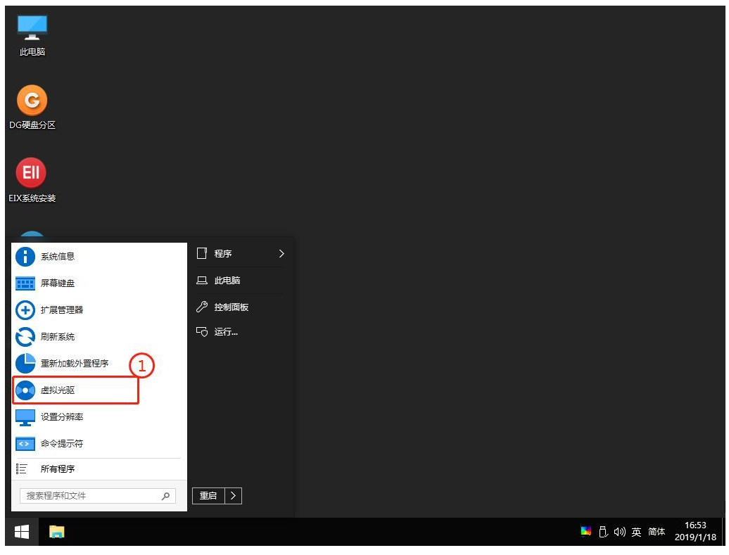 5、進PE系統后,在開始菜單找到“虛擬光驅”并運行。