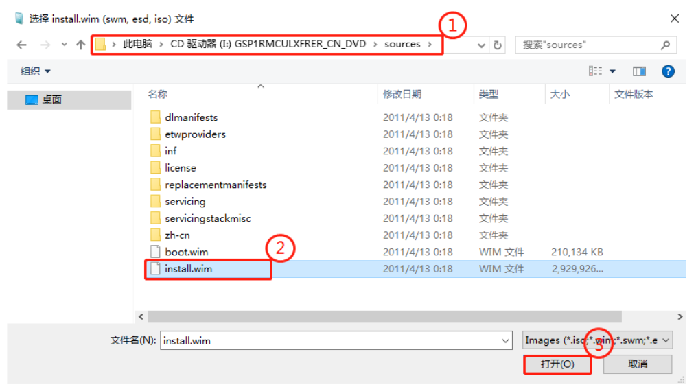6、在打開的虛擬光驅窗口依次按順序裝載Win7 ISO映像文件。