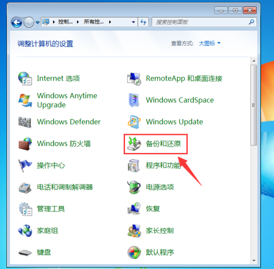 1、點擊進入控制面板,進入備份還原,點擊設置備份;