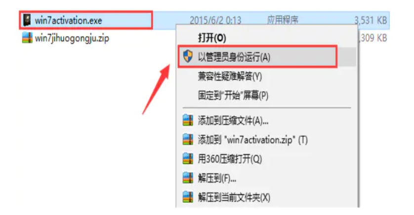 1、下載解壓win7activation工具軟件包,鼠標右鍵點擊解壓文件,以管理員身份運行選項打開。