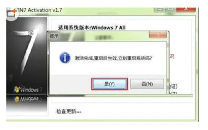 4、等待激活完畢后,軟件會彈出提示框提示激活完成,需要重啟后才能生效,點擊是選項重啟電腦就可以成功激活了。