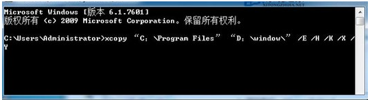 4、再將C:\Program Files文件夾權限也復制至D盤Program Files文件夾上??梢栽谙到y命令提示符窗口中,輸入如下命令xcopy “C:\Program Files” “D:\window\” /E /H /K /X /Y。在D盤獲得權限后,再刪除C盤該路徑下的文件即可。