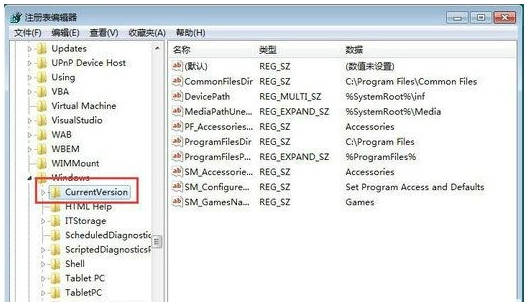 2、在注冊表中依次展開:HKEY_LOCAL_MACHINE \ SOFTWARE \ Microsoft \ Windows \ CurrentVersion項,在右側窗格中找到ProgramFilesDir項雙擊打開,將默認數值修改為你要修改的路徑。