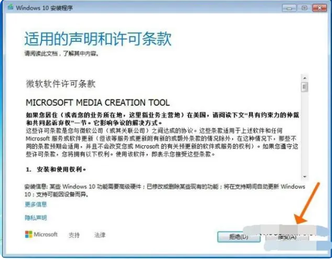 2、來到“接受使用條款和隱私聲明”,點擊“我接受”。