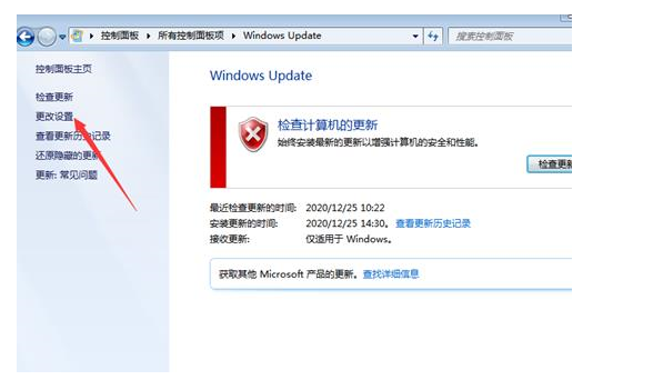 6、進入“Windows Update”頁面后,在左側標簽頁中選擇“更改設置”。
