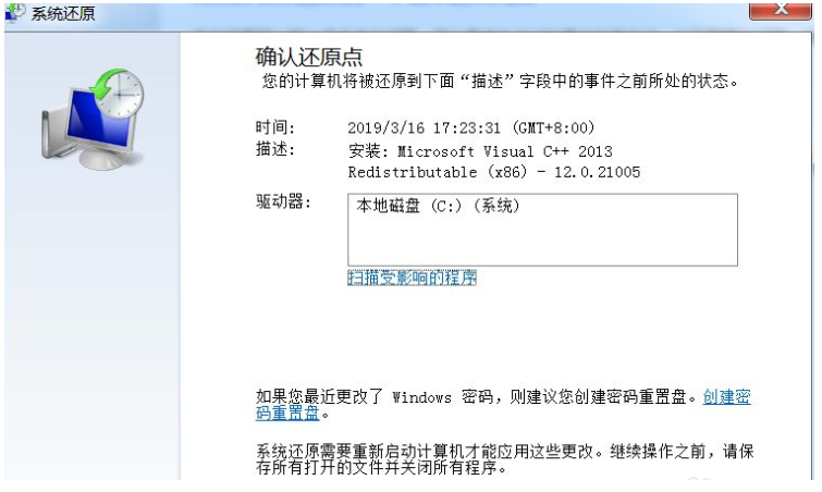 6、如圖所示是還原的最后確認,可以根據描述等信息確認是否進行還原操作。