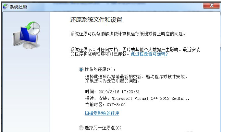 3、有自動或者手動的備份可以進行選擇,這里選擇恢復系統設置或計算機選項。