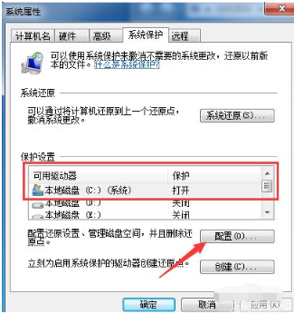 3、關掉以此節省C盤空間,點擊“配置”即可。