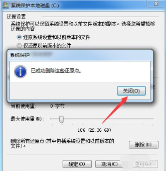 4、將已存儲的系統還原文件刪除,以釋放被還原文件所占用的多余空間,點擊“刪除”即可。