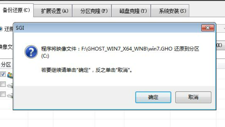 5、彈出提示框,提示映像文件即將還原到分區C,點擊確定繼續;