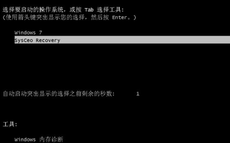 6、這個界面默認選擇SysCeo Recovery項啟動;