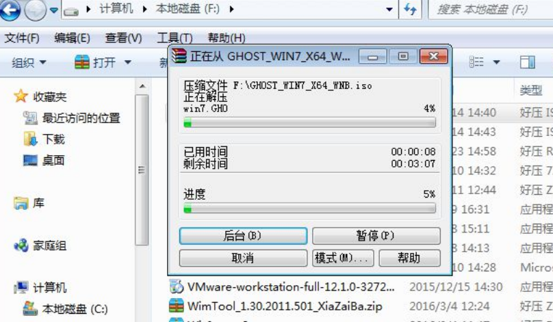 2、彈出對話框,執行win7系統iso壓縮包解壓過程;