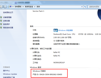2.在計算機屬性頁的最下方有激活信息,點擊這個激活鏈接,然后輸入激活碼。