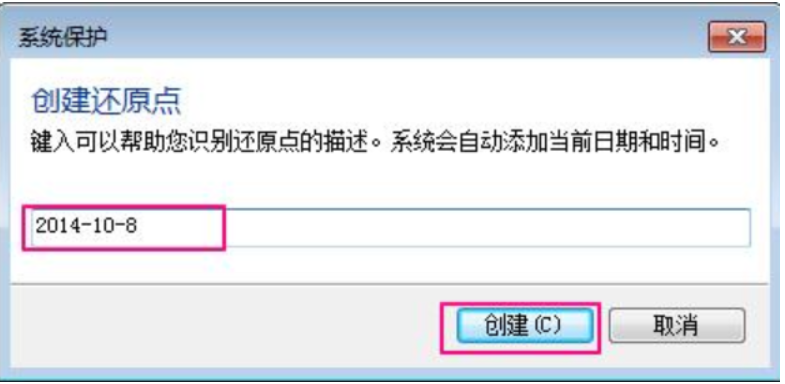 5、為還原點添加描述,點擊創建就可以了。
