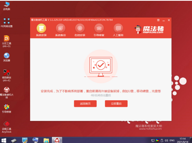 3、電腦在pe系統內軟件自動安裝成功后重啟電腦;