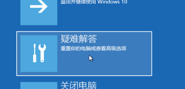 2.重復操作2到3次,直到出現選擇選項界面,單擊故障排除。