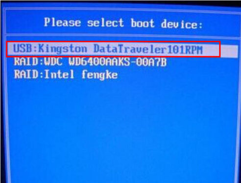 3、將U盤插入電腦上,重啟電腦,并在電腦出現開機換界面時按下U盤啟動快捷鍵,直到進入優先啟動項設置界面。選中U盤,將其設置為第一啟動項后按下回車就可以啦。