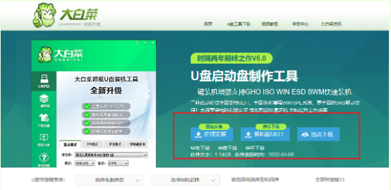1、下載大白菜U盤啟動盤制作工具最新版進行制作;