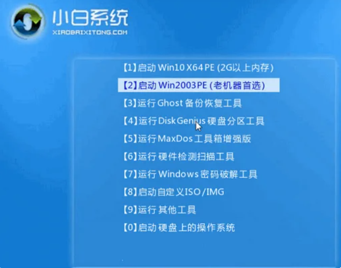 5、通過方向鍵選擇【01】PE進入pe系統