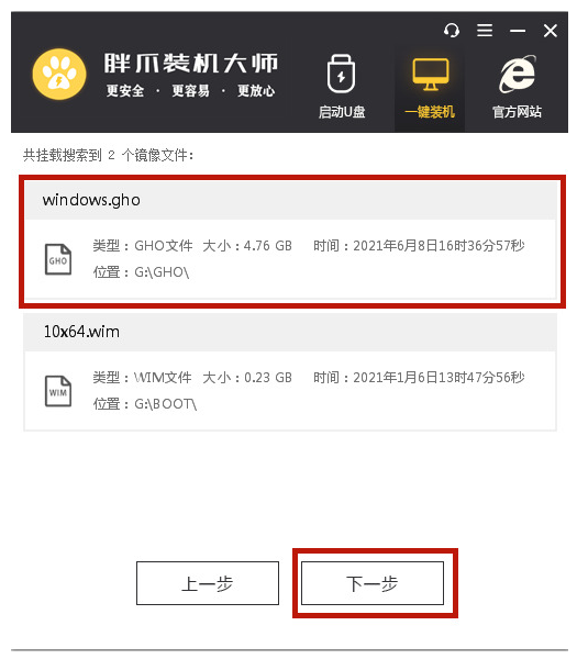 在該步驟,我們會看到多個鏡像文件。選擇后綴為“gho”的文件,點擊下一步;