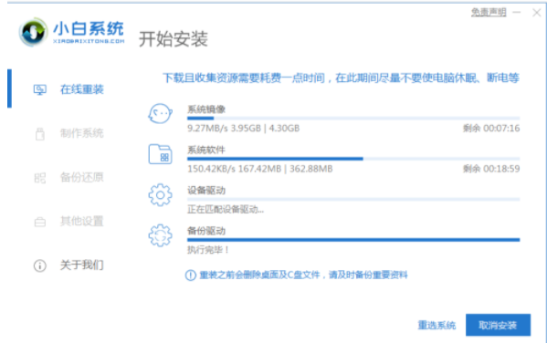 (5)電腦進入pe系統后,小白裝機工具就會自動開始安裝win7系統。