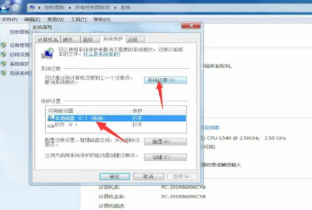 4、彈出系統屬性窗口,點擊系統盤,選擇系統還原,點擊下一步,再次點擊下一步。