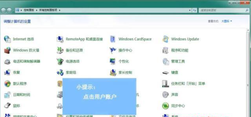 2、然后在控制面板里面點擊“用戶賬戶”;