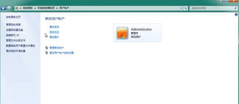 3、接著在“更改用戶賬戶”欄目里面點擊“刪除密碼”;
