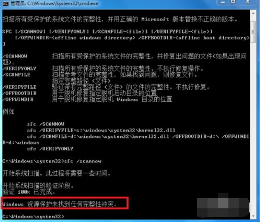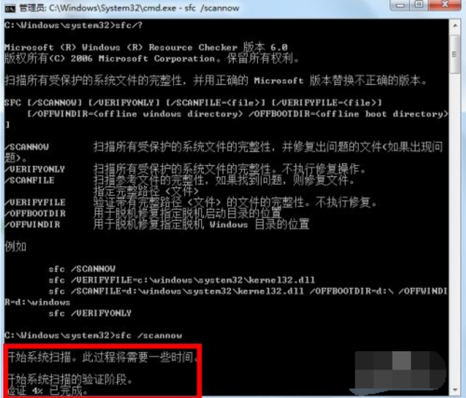 4、然后在命令提示符輸入sfc/?回車,對話框將提示你所有的修復命令。