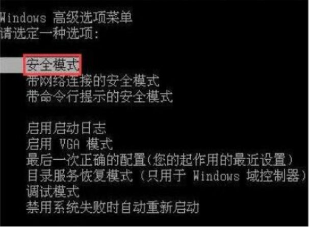 2、如果是進不了系統的情況下,先開機不斷按f8鍵進入啟動界面,選擇安全模式進入后再按照步驟一打開cmd進行后續操作。