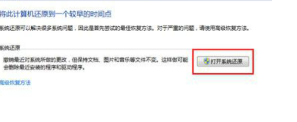 3、然后打開系統win7還原,點擊按鈕,如果有賬戶控制則會有所提示,通過即可。