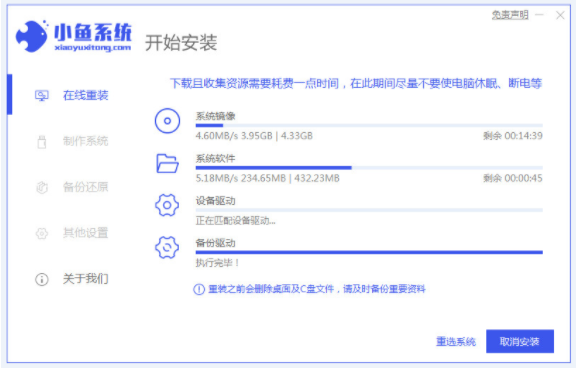 3、下載完成之后小魚軟件會自動進入部署安裝環境中,耐心等待。