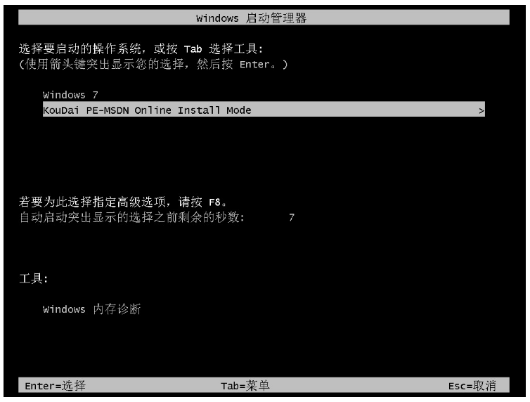 11、再次進入啟動管理器的頁面,選擇windows7,按回車進入。