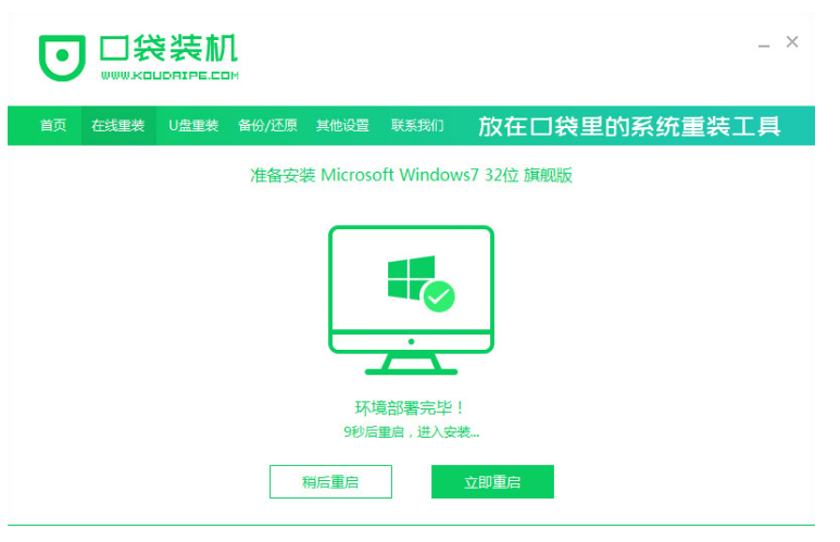 5、耐心等待軟件部署系統環境,部署完畢之后,點擊立即重啟。