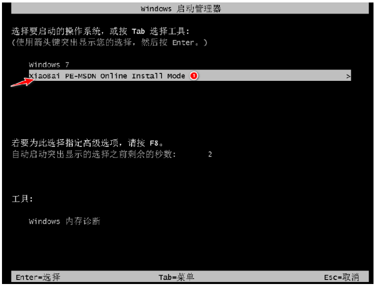 5、重啟電腦后,在開機菜單界面選擇 XiaobaiPE 菜單按回車進入。