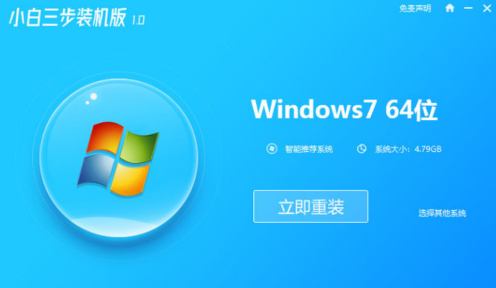 1.首先我們要下載一個小白三步裝機版軟件,然后打開,選擇立即重裝。