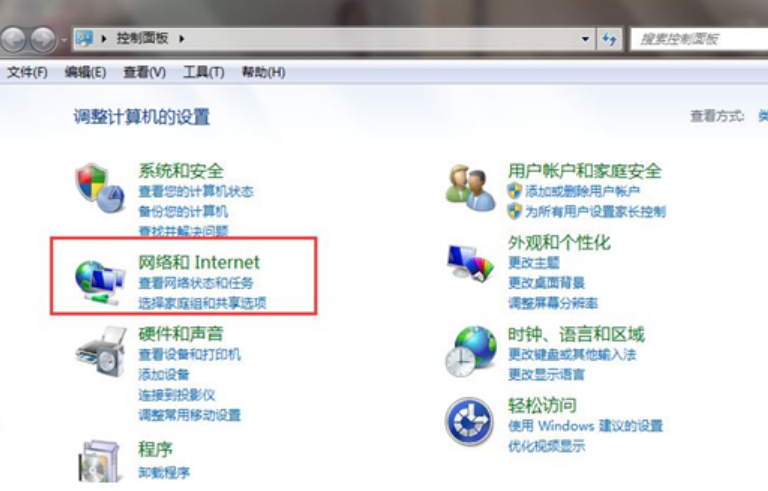 1、打開win7電腦的控制面板,點擊進入【網絡和internet】選項。