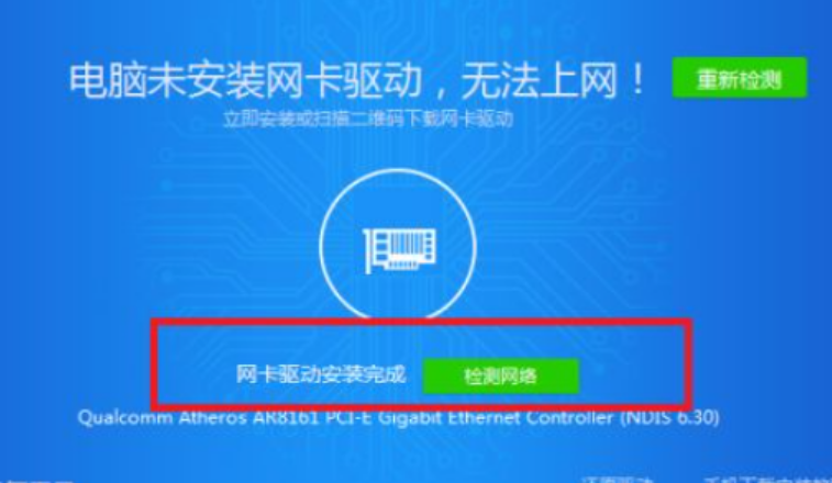 等待軟件檢測提示后點擊相應按鍵修復網卡驅動即可。