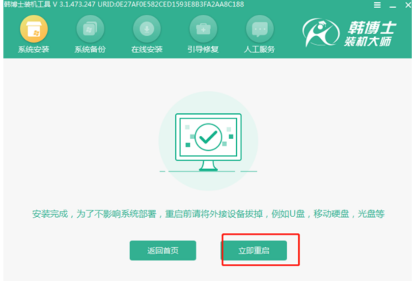 3、軟件會自動進行環境部署,完成后點擊重啟電腦。