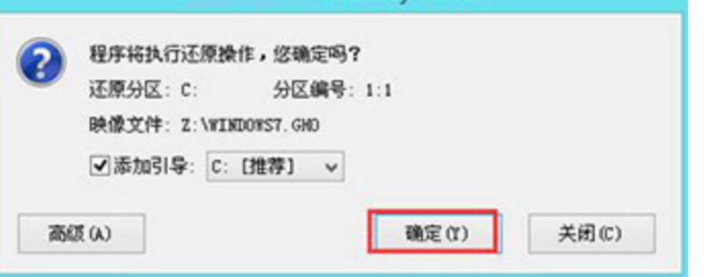 5、接著會彈出一個詢問框,提示用戶即將開始安裝系統。確認還原分區和映像文件無誤后,點擊“確定”。