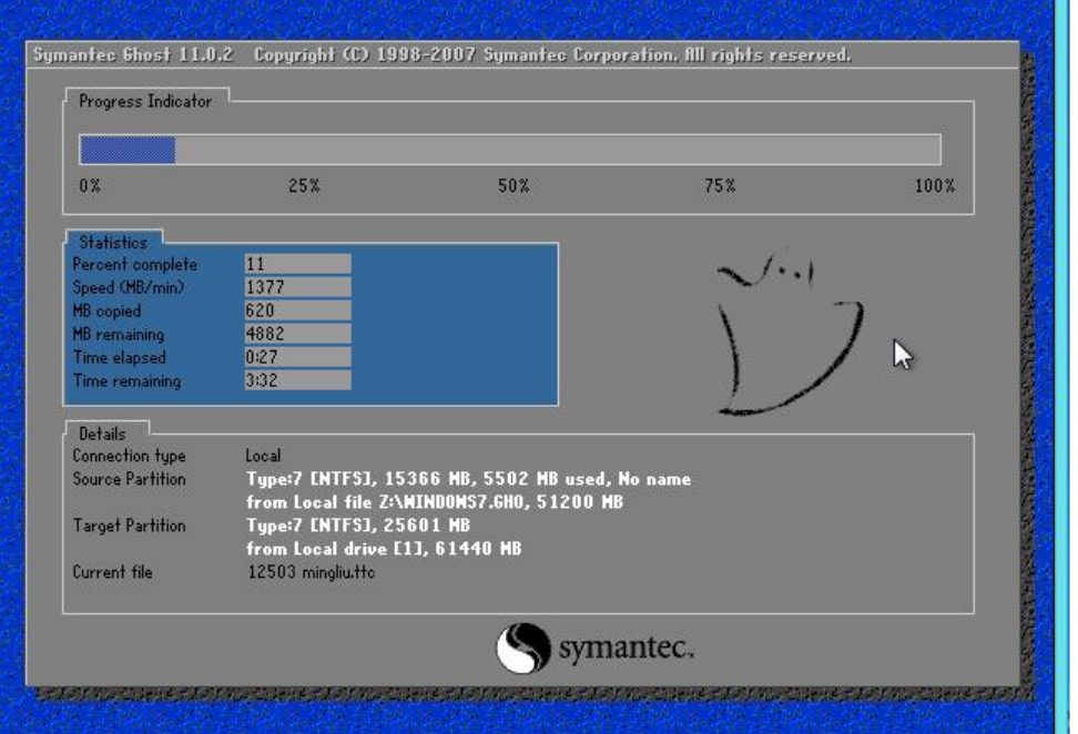 6、完成上面的操作后,程序開始釋放系統鏡像文件,安裝系統。我們只需耐心等待,等操作完成后會自動重啟電腦。