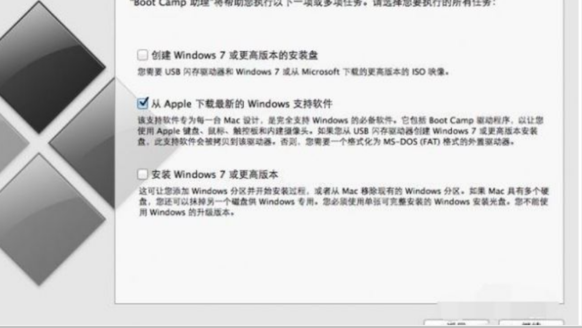 2、插入win系統U盤到電腦,選擇從Apple下載最新的Windows支持軟件,點擊繼續。