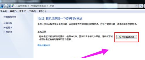 4.進入頁面后,我們直接點擊【打開系統還原】。