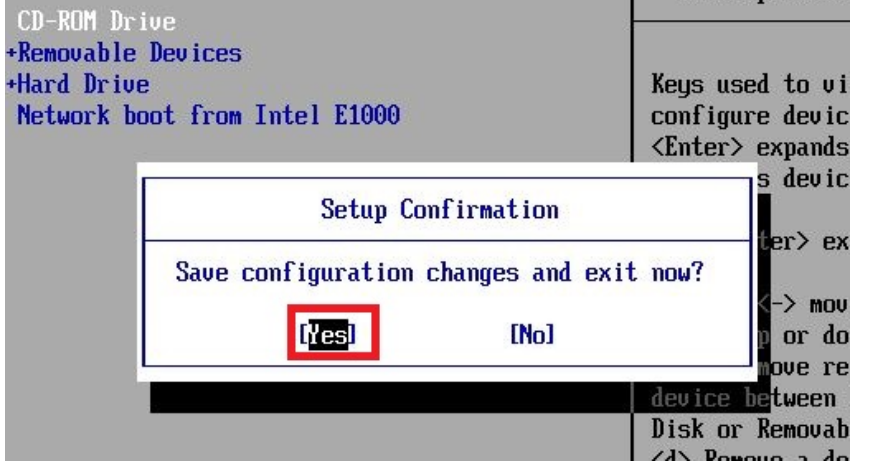 4、按“F10”,選擇“Yes”,按下“回車鍵”,計算機將重啟。
