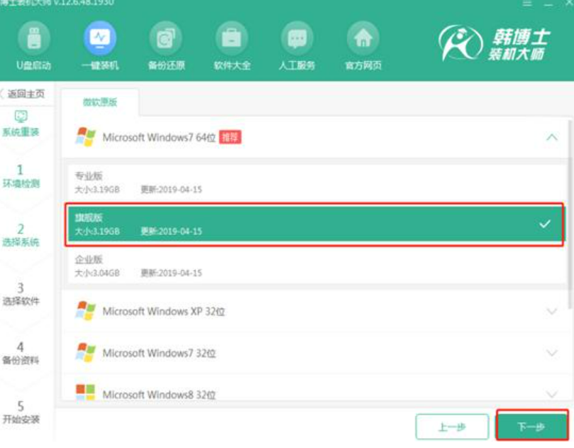 3、在以下界面中選擇win7系統文件進行下載,最后點擊"下一步"繼續操作。