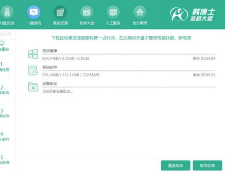 借助韓博士裝機工具進入Pe系統等待工具安裝系統。