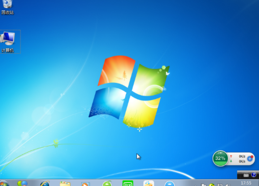 5、 重啟后會進入系統部署階段,等待部署完成進入win7系統桌面即重裝系統成功。